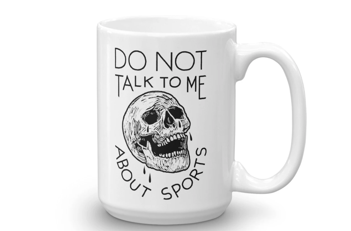 I also purchased a few things from Sportsball Supply Company. I know! I know that “I don’t understand sports, what is this sportsball game?” is a dated joke at this point. “Let people enjoy things,” etc. I know. However, I do truly hate sports and love the intense goth aesthetic of these confused and apathetic products. (And even if you do like sports, they have a few cool designs that aren’t anti-sports at all!)