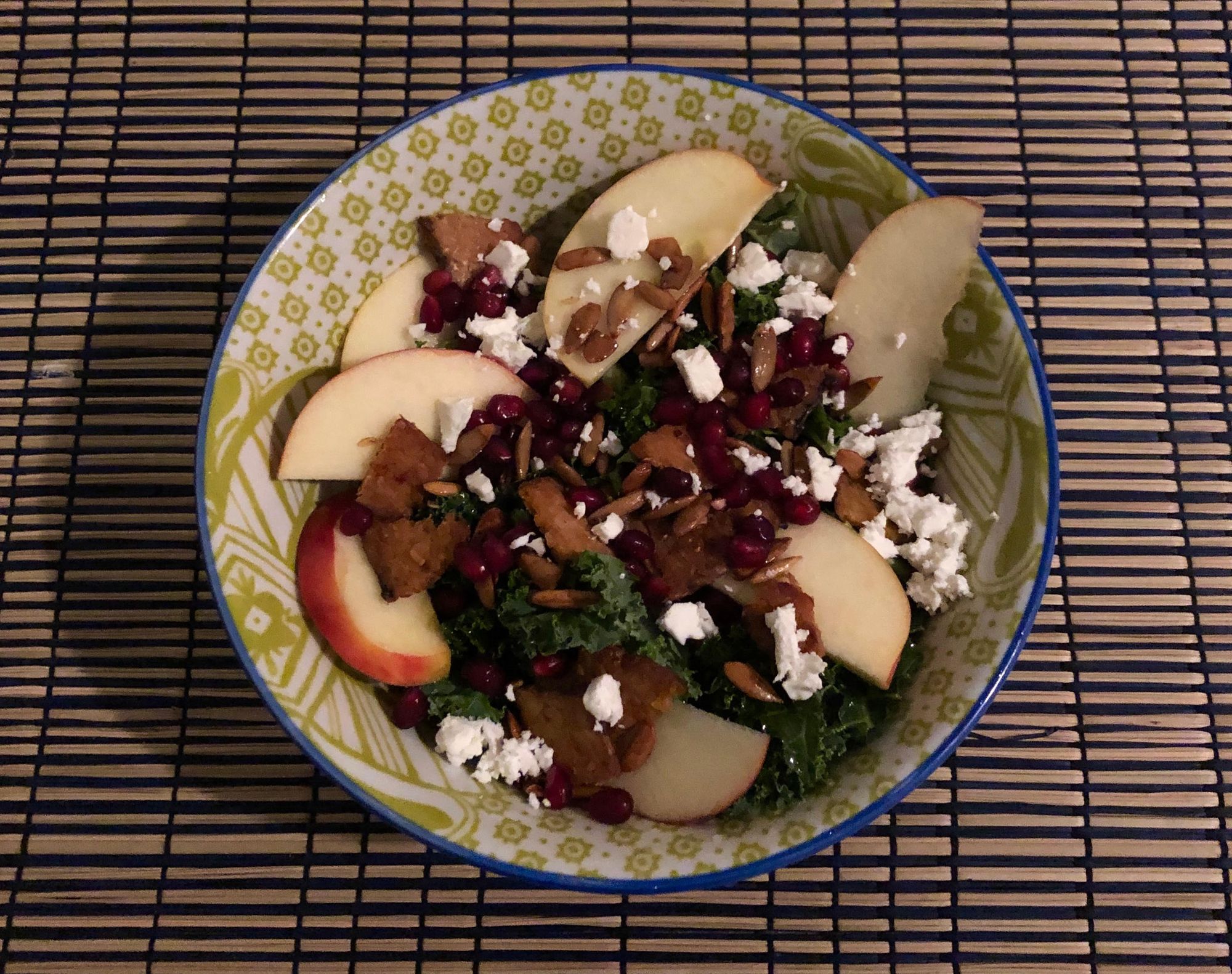 If you feel like putting some effort into a salad, Half Baked Harvest’s Honeycrisp Apple and Kale Salad is EXTREMELY DELICIOUS. I don’t eat meat, so I substitute tempeh bacon for prosciutto and it’s certainly not as good but that’s a choice I have to live with. It’s still extremely good, to me. I love all the fall flavors — the maple and cinnamon coating on the pumpkin seeds, the fig and apple cider vinaigrette — and the fact that it makes me eat kale, which I normally do not.