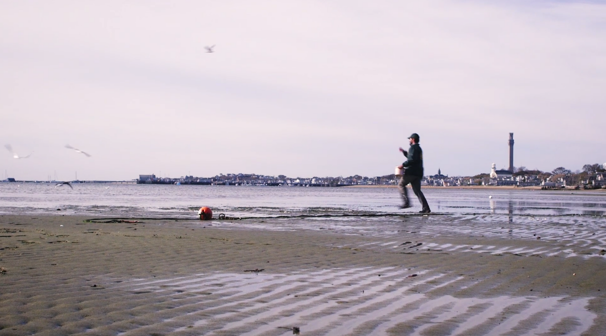 So Mike sets about his new job, *checks notes* flinging clams… at birds.