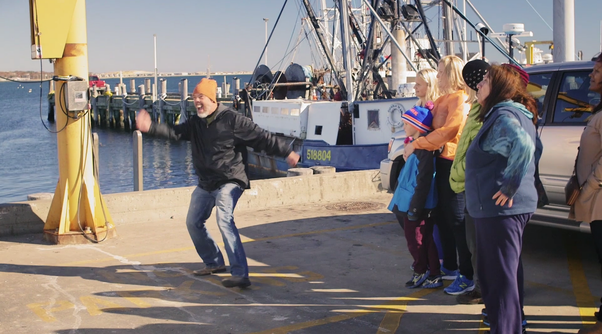Mike and Sammy meet up with Mike’s wife and kids down on the fishing docks, where another fisherman named Carlos is shrieking “YEAH! LOOKATDAT! YEAH! THAT’S GREAT! YOU EVER SEE A TUNA THAT BIG?!” while the Luna children leap up and down, clearly having been told to look excited but not given any more specific instructions. Carlos bounds around the docks, continuing to scream, and it’s one of the most unsettling performances I have seen in recent memory.