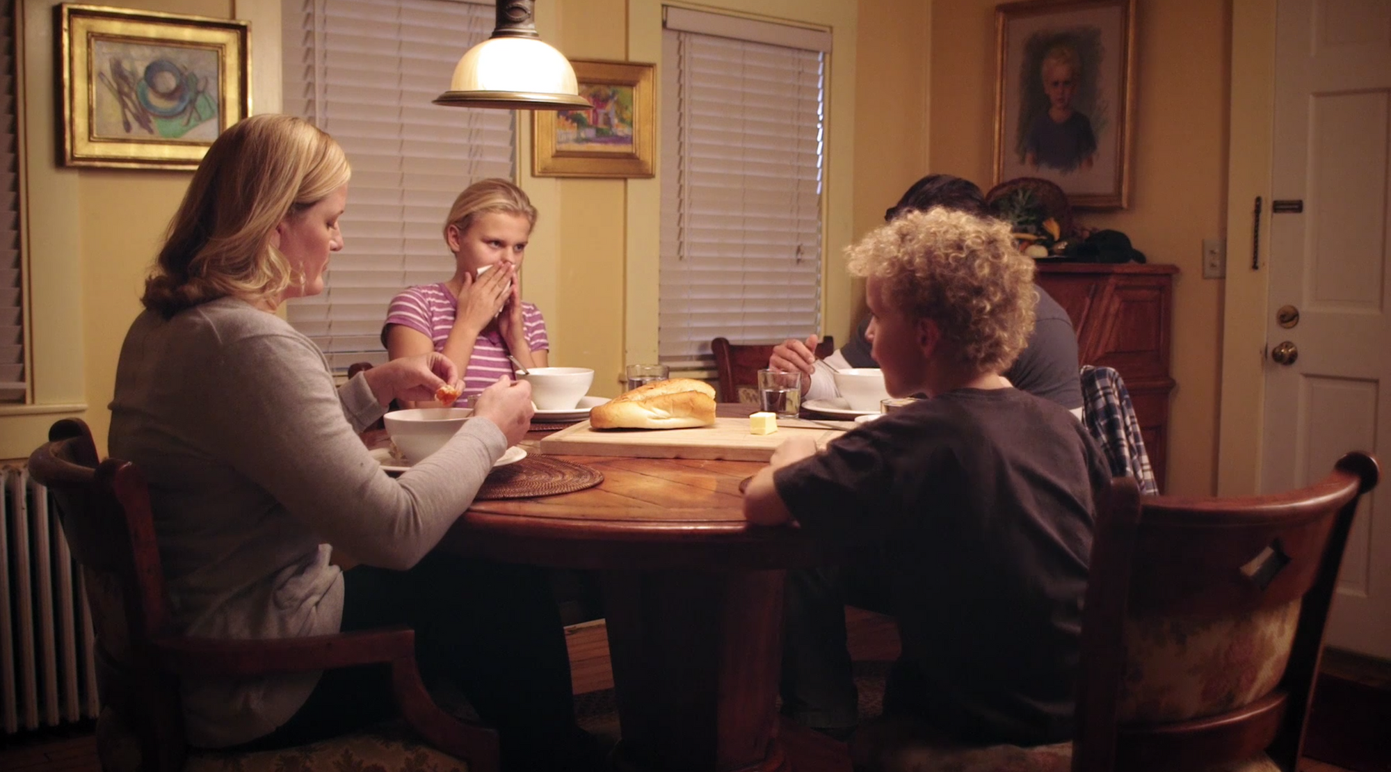 Each Luna kid gets one line and they deliver them as if someone is holding a gun to their head. The girl Luna has terrible enunciation and rattles off her lines as if reciting the names of the 50 states that she’s memorized for a social studies quiz. Everyone except the Luna patriarch looks exactly alike. These actors are writer/director Arthur Egeli’s actual family.