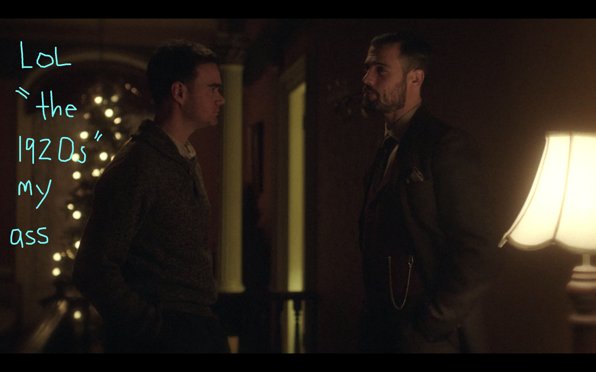 There is SO much going on in this movie. Daniel is a big hunk of a modern man who does not look remotely like a gentleman from the ’20s. The costumes in the flashback scenes are far too modern, and yet the dialogue is far too old-timey. There are so many jokes where Ghost Daniel says something in front of regular humans like “I remember when this inn was built” and the regular people are like “whaaa?” and Kate has to be like “he’s joking! He’s DJ the distant Forsyth cousin and not an undead spirit from olden times” and the locals are like “oh, well that checks out then.” Daniel’s ghostly backstory is full of unnecessary complications, like him becoming a bootlegger to save the inn because his fiancée’s dad wanted her to marry a responsible man like an innkeeper. Also, I think his fiancée actually caused the curse because of her love of Charles Dickens’ A Christmas Carol? And at one point, Kate has to choose between the mandatory law office Christmas Eve party and helping Daniel.
